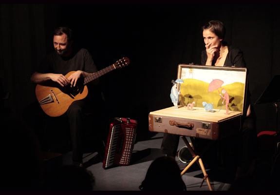 Barbara Steinitz est née à Fribourg en Allemagne en 1978. Depuis, elle travaille en tant qu’illustratrice et auteure indépendante pour des des projets d’édition, de danse et de théâtre. Björn Kollin, sculpteur, auteur compositeur et multi-instrumentaliste, vit et travaille à Berlin. Depuis 2009, la compagnie berlinoise Steinitz + Kollin a présenté ses spectacles de théâtre de papier dans plusieurs festivals d’Europe et d’Amérique.