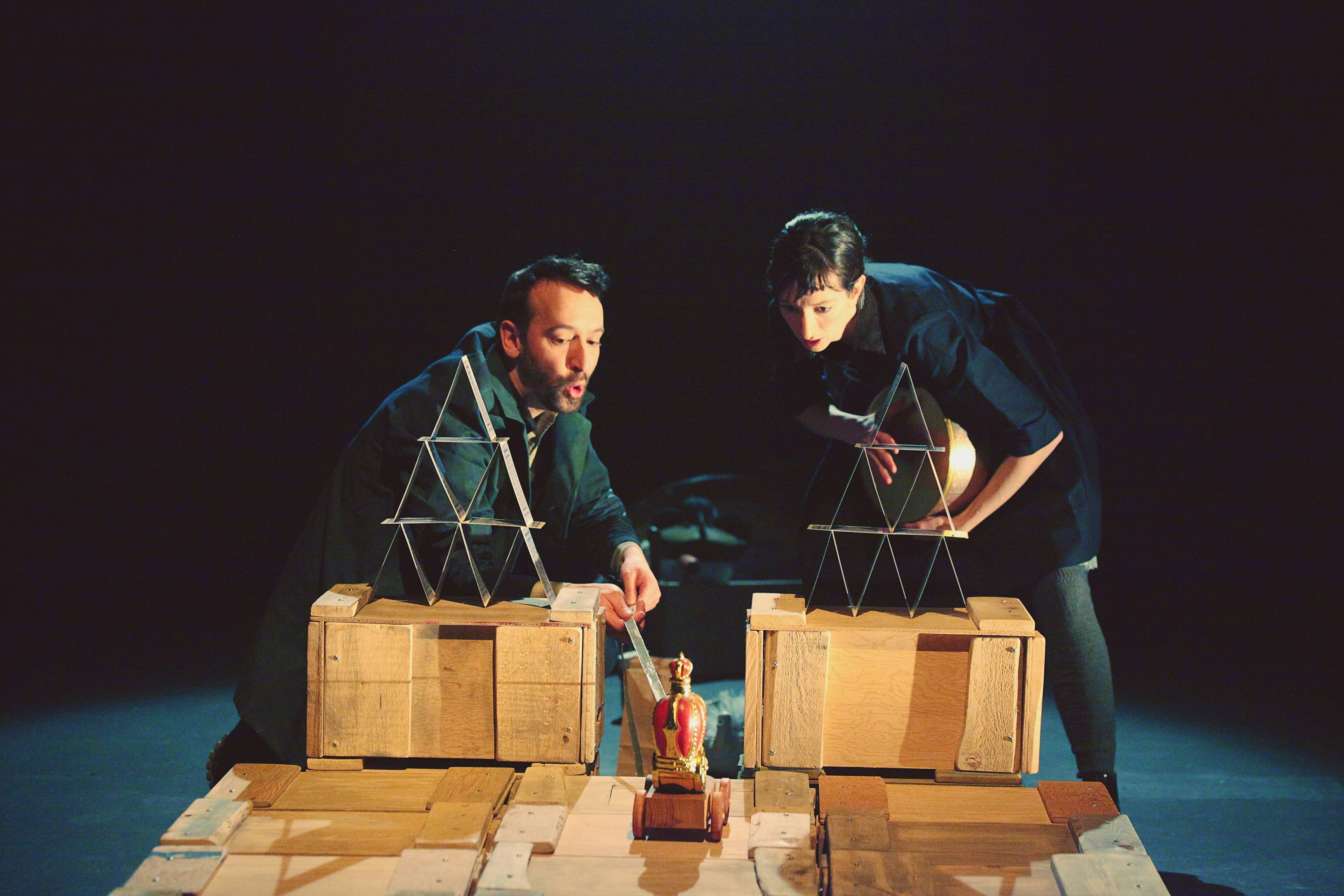 Dany Lefrançois et Sara Moisan vivent et travaillent au Québec, à Saguenay, ville fameuse pour son Festival international des arts de la marionnette (FIAMS). Après s’être rencontrés pour Kiwi (2007), ils codirigent la compagnie, inventant sans cesse de nouveaux rapports entre l’acteur et l’objet animé. Ils ont signé neuf spectacles, pour adultes et adolescents, dont deux avec la compagnie mexicaine La Luna Morena. La Biennale internationale des arts de la marionnette les a accueillis en 2017 avec Le Petit Cercle de craie et Kiwi.