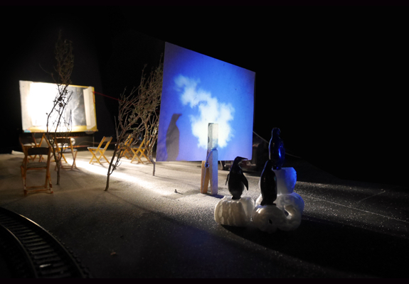 Le bonheur a besoin d’errance… comme celle que l’on s’offre lorsque l’on part en voyage. Enrichis des témoignages recueillis auprès d’une poignée de gens sur le thème du bonheur, le Vélo Théâtre a conçu une succession de tableaux mouvants. Invités à se déplacer dans l’espace, les spectateursvoyageurs cheminent d’une gare à l’autre, en tentant de « trouver leur place ». Au fil du périple, le Vélo Théâtre fait résonner poétiquement les objets du quotidien, comme autant de signes évocateurs de l’odyssée, de l’éternelle transformation… de quelque chose qui ressemble au bonheur.